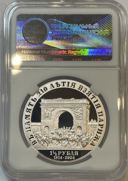 В рамках проекта Монетное дело Санкт-Петербургский монетный двор отчеканил памятный монетовидный жетон, выпуск которого приурочен к 210-летию вступления русских войск в Париж.