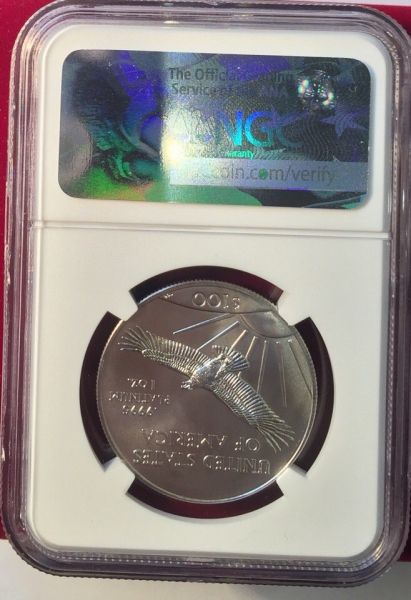 Платиновая монета США «Юбилейный Американский Орел» 2017 года выпуска посвящена 20-летнему юбилею монетной платиновой программе «Американский Орел». На этой монете изображен портрет Статуи Свободы. В слабе авторитетной американской грейдинговой компании NGC с грейдом MS69 FIRST DAY OF ISSUE (Первый день выпуска монеты).