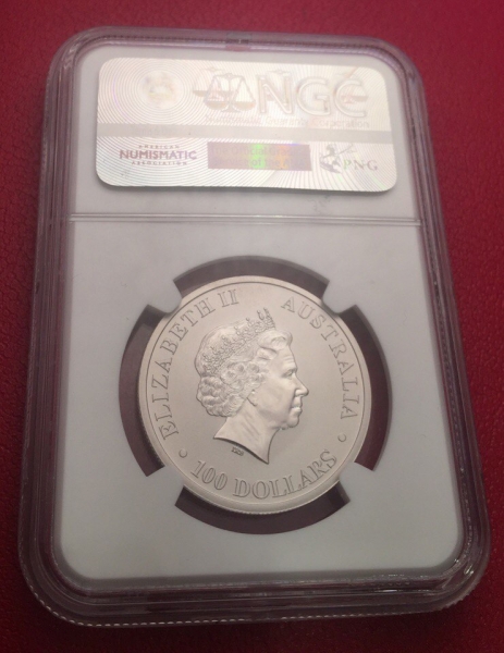Реверс: портрет королевы Елизаветы II работы Яна Бродли и надписи: «ELIZABETH II • 100 DOLLARS • AUSTRALIA».