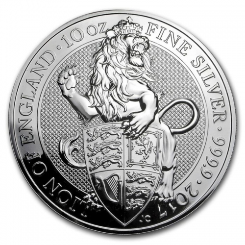 Королевский монетный двор Великобритании представил в 2017 году серебряную версию инвестиционной монеты «Лев Англии» из серии "Звери Королевы", которая вдохновлена геральдическими мотивами с древних времен до наших дней. Это первая монета в 10 унций в качестве бриллиант анциркулейтед, выпущенная в Великобритании.