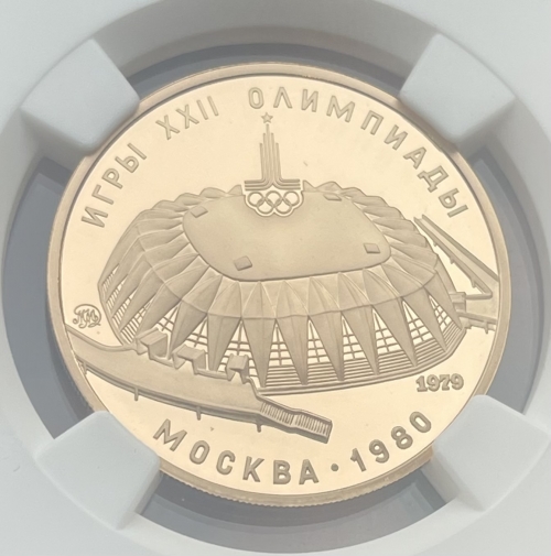 Сверху вдоль канта слова «ИГРЫ XXII ОЛИМПИАДЫ», ниже слева монограмма монетного двора «ММД», в середине спортивный зал «Дружба», ниже справа год выпуска монеты «1979», внизу у края монеты разделенные точкой слово «МОСКВА» и год проведения XXII Олимпиады «1980».