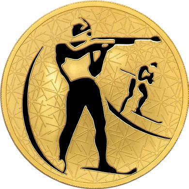 на матовой поверхности диска - два биатлониста на фоне стилизованного изображения снежинок.