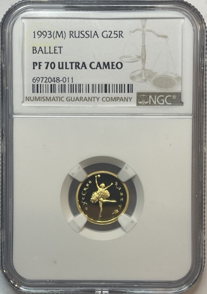 "Русский балет" - прочно устоявшееся в мировой культуре понятие, отражающее бесспорный авторитет русских хореографов, композиторов и артистов балета. Возникший во второй половине XVII в., русский балет занял к началу XX в. ведущее место в хореографическом искусстве. Слава русского балета, начавшись с Русских сезонов в Париже и Лондоне (1907-1914), организованных С.Дягилевым, с творческой работы легендарной балерины Анны Павловой, была приумножена Г.Улановой, М.Плисецкой, Е.Максимовой, В.Васильевым и другими российскими "звёздами", искусство которых получило признание во всем мире. В данную серию входят 20 монет из драгоценных металлов. Монеты одного достоинства, изготовленные качеством "пруф" и "анциркулейтед" ("а/ц"), имеют одинаковый дизайн.